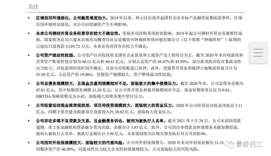 本次評級下調的原因可能是攀登開投的區域信用環境惡化、鋼材貿易業務存在較大不確定性、資產流動性弱、債務規模大、存在多筆不良貸款及欠息。其中最得值關注的一點是區域信用環境惡化,鐘山區出現多起國有企業非標產品融資還款事件。