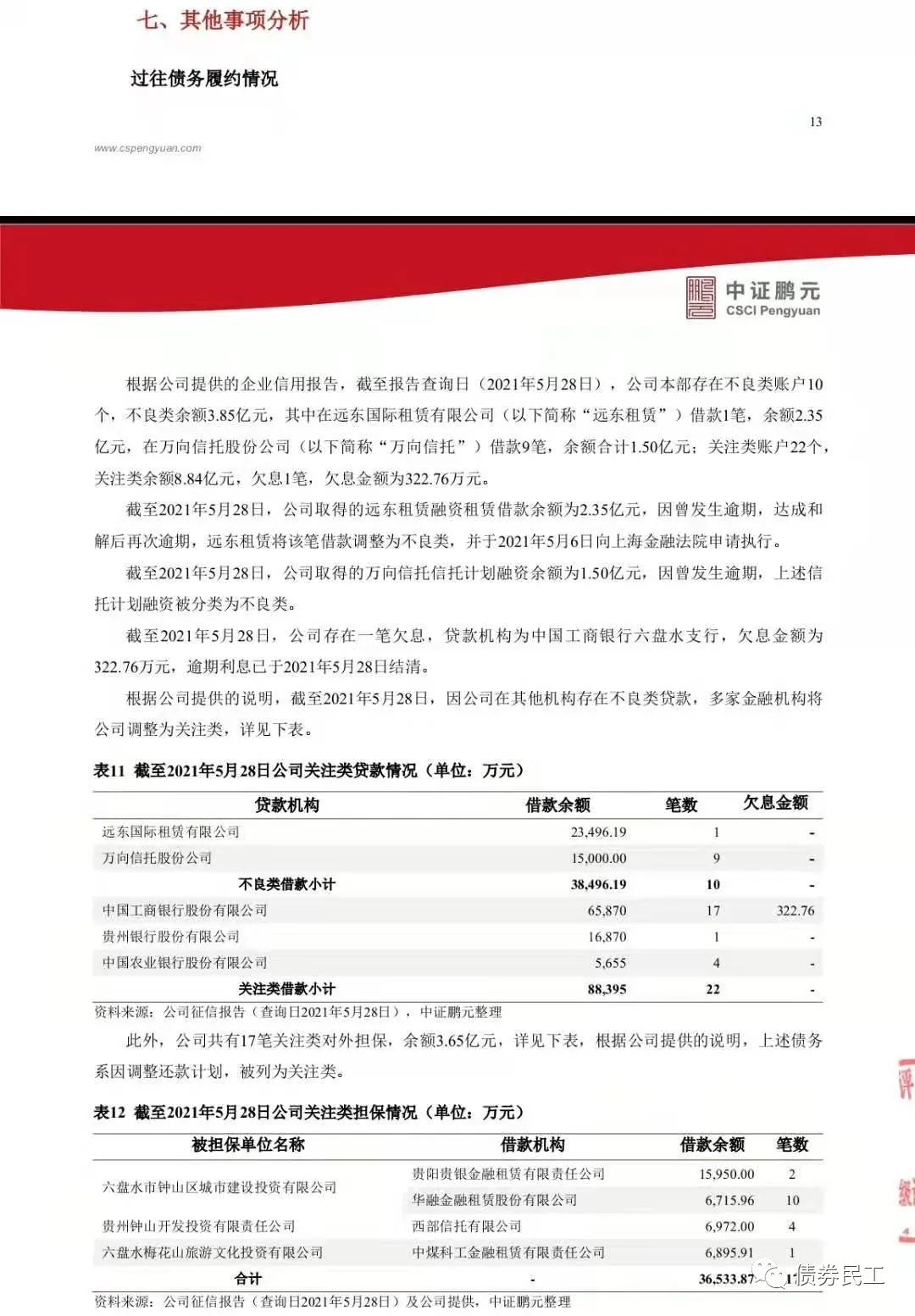 攀登開投的這份跟蹤評級報告中,詳細披露了公司的過往債務履約情況,包括:不良類貸款余額3.85億元,關注類貸款余額8.84億元,欠息金額為322.76萬元(已于2021年5月28日結清)。攀登開投的不良類貸款主要是對遠東租賃和萬向信托的借款。