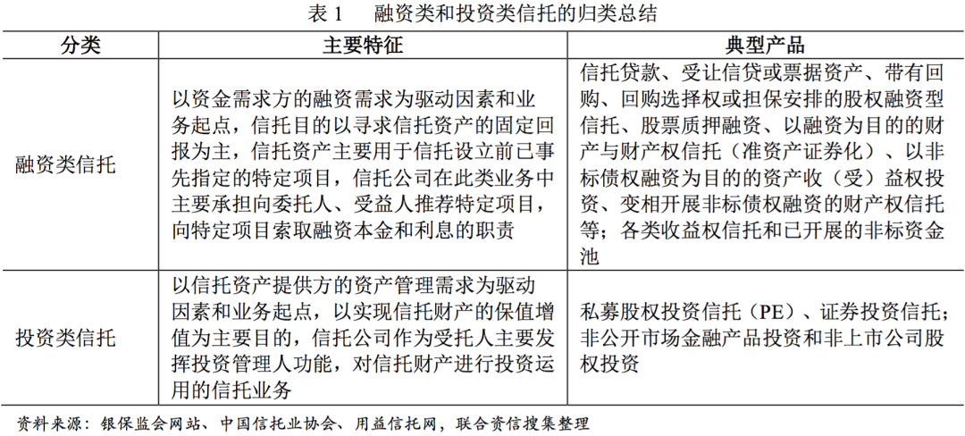 對于(3)各類資產(chǎn)收(受)益權(quán)投資,(4)附加回購、收益補(bǔ)償、流動性支持等擔(dān)保安排或條件嚴(yán)苛對賭協(xié)議的股權(quán)(含收益權(quán))這兩類產(chǎn)品,雖然名為各類資產(chǎn)收(受)益權(quán)、股權(quán)(含收益權(quán))投資,但均是以獲取固定本息為目的,通常伴隨傳統(tǒng)融資類業(yè)務(wù)的增信措施,具備明顯的融資類業(yè)務(wù)特征,因此也屬于融資類信托產(chǎn)品。