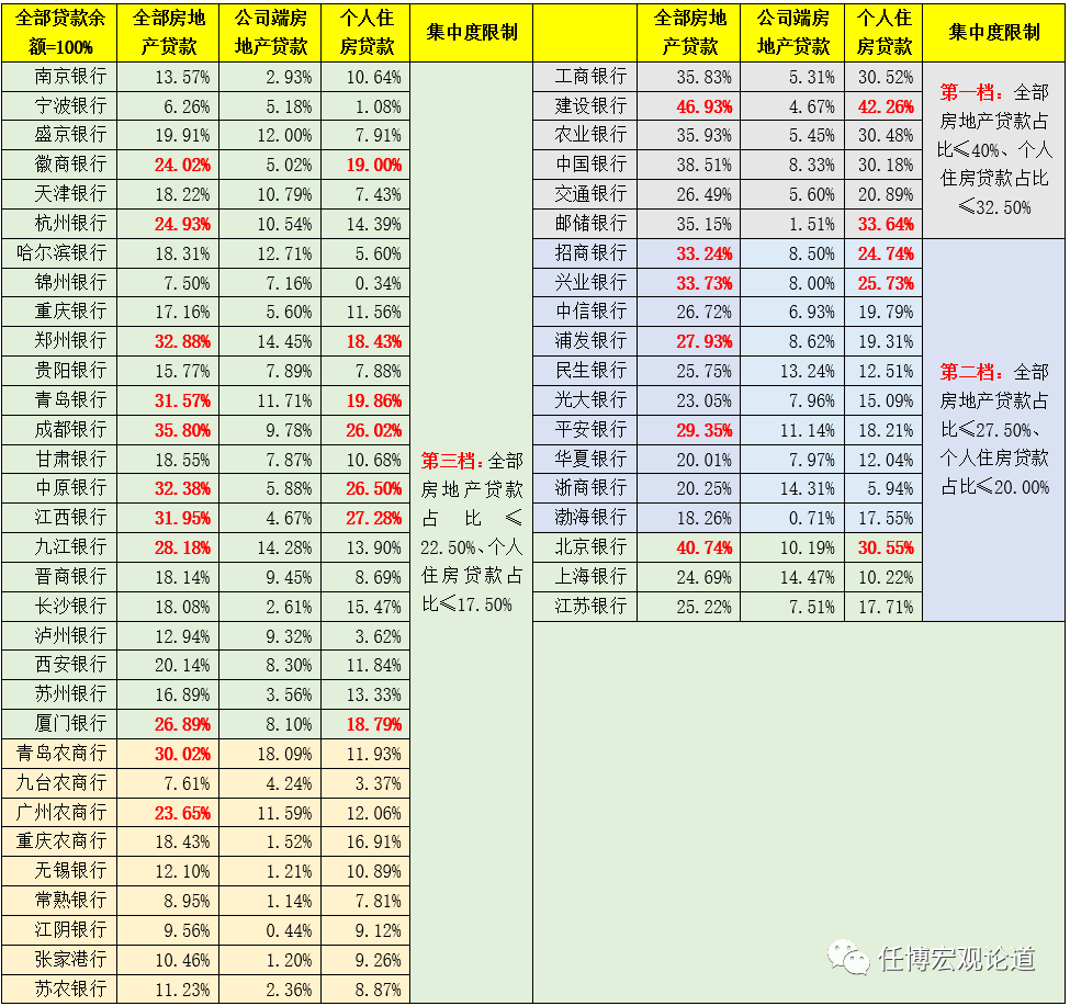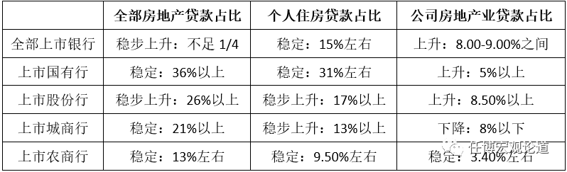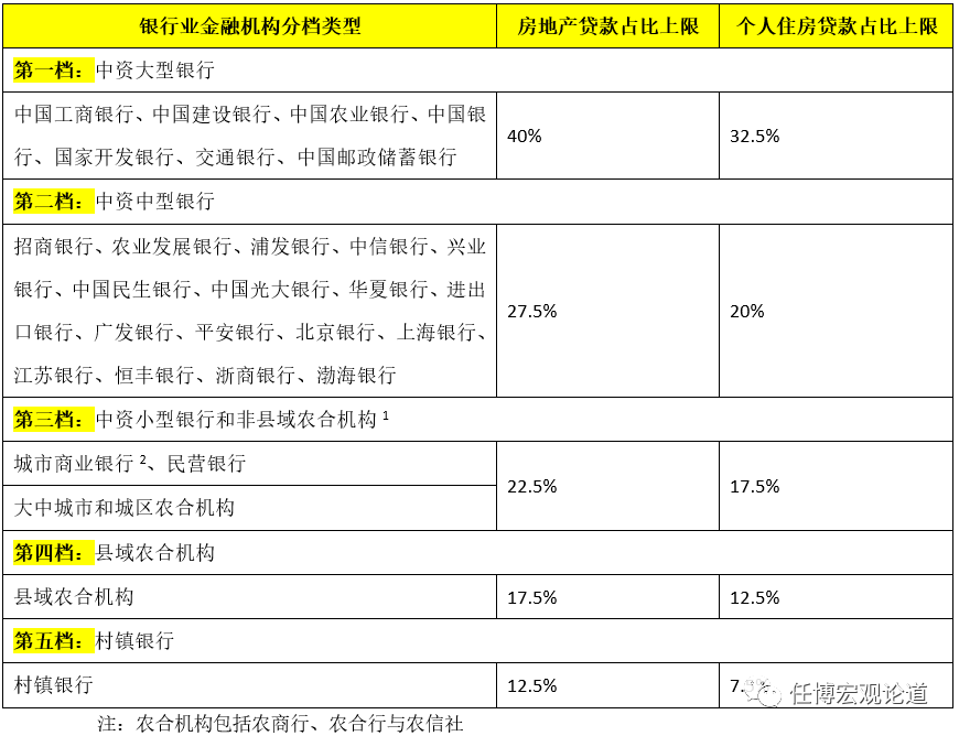 (六)322號文僅提及個人住房貸款和全部房地產貸款,同時從比例設置來看,第一檔(國有行)、第二檔(包括3家城商行的中型銀行)、第三檔的對公端房地產貸款占比上限分別應不低于7.50%、7.50%和5%,第四檔與第五檔的對公端房地產貸款占比上限亦分別應不低于5%。因此我們大致可以這樣理解,322號文同時對個人住房貸款和對公端房地產業貸款比例提出了具體約束要求。