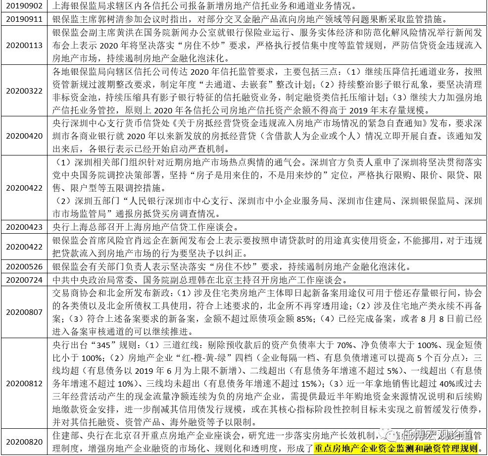 四、附件:2019年以來房地產行業相關監管政策匯總