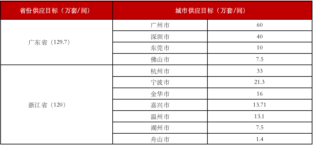 表:部分省市“十四五”時(shí)期新增保障性租賃住房供應(yīng)目標(biāo)(萬套/間)
