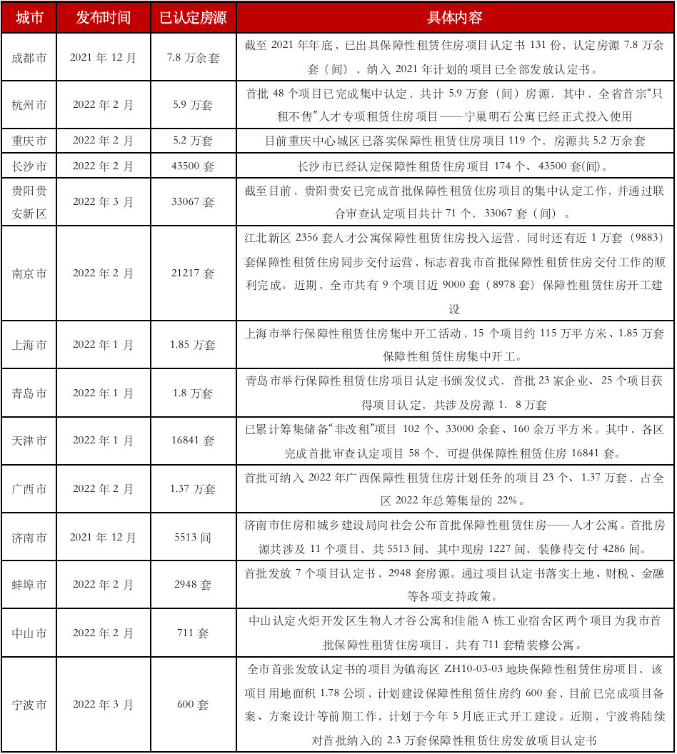 表:部分城市公布的保障性租賃住房認(rèn)定房源量