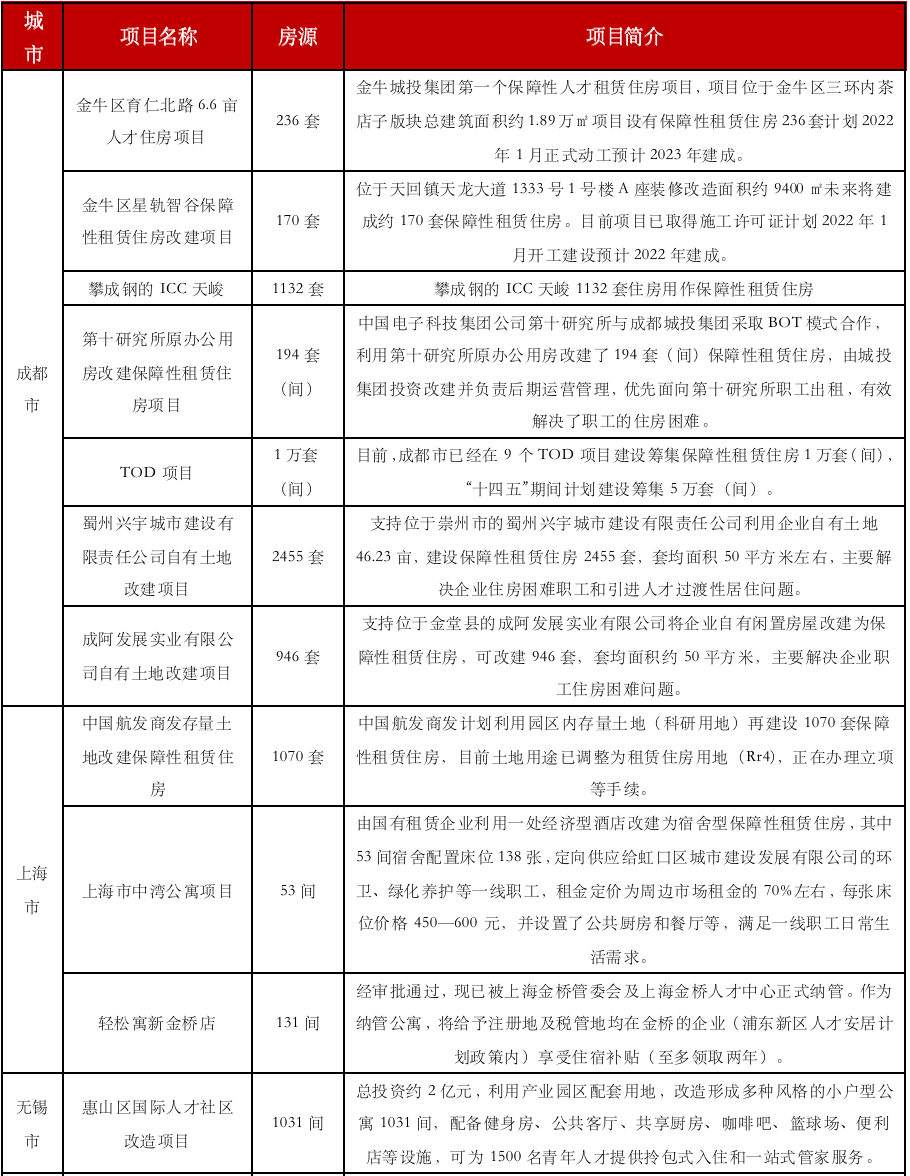 表:部分城市公布的保障性租賃住房納管項(xiàng)目