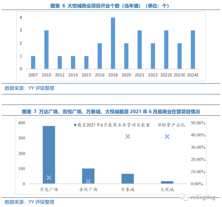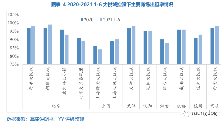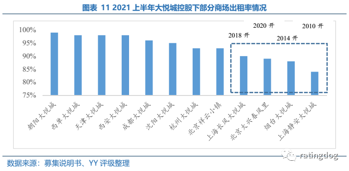 整體來看,大悅城具有良好的股東背景和明確的集團內部定位,商業物業與住宅業務并舉,其中商業項目整體出租率良好,有一定品牌效應