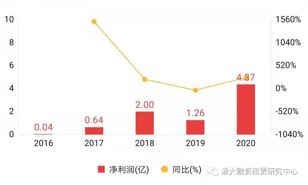 國新租賃2016年-2020年資產(chǎn)負債及凈利情況(單位:億)