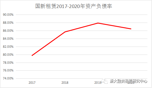 圖:國新租賃2017-2020年資產(chǎn)負債率情況