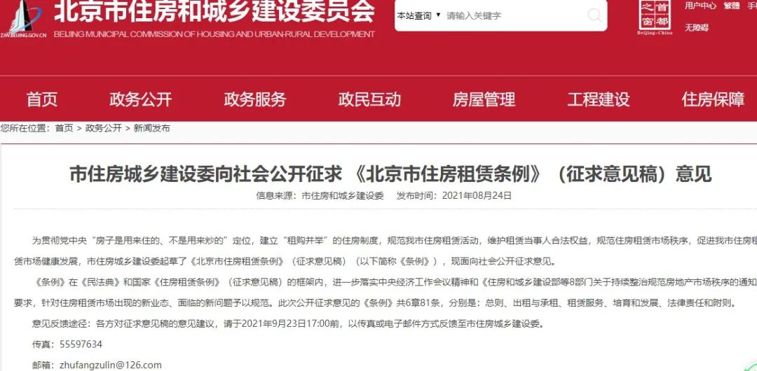 8月24日,《北京市住房租賃條例(征求意見稿)》發布。