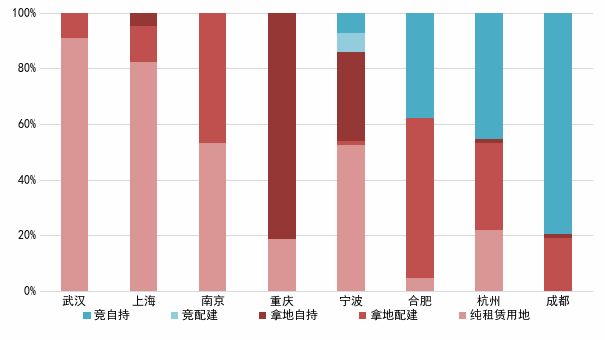 2、民企租賃用地主要來自競自持,國/央企競配建比例大(略)