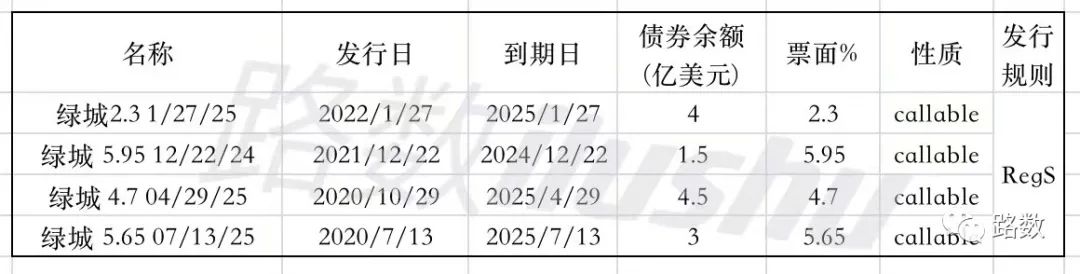 綠城目前存續(xù)的境外美元債僅有4筆,不存在回售壓力,到期時(shí)間也比較靠后。▼