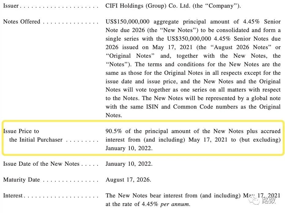 旭輝增發(fā)的那筆看上去票息最低,只有4.45%,金額共1.5億美元。不過這一筆其實(shí)是按照90.5%折價(jià)發(fā)行。▼