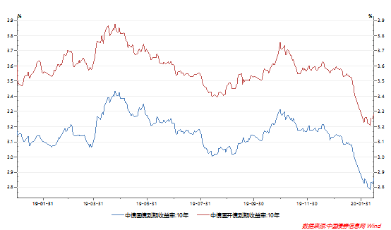 與T相同,215在開盤受疫情以及央媽OMO操作降息影響給出一個3.25的開盤后,便一路TKN,盤中最低價到了3.16。下午OFR逐漸增多,加上當天資金真的緊,很多交易員大佬們都在忙著平頭寸,逐漸回吐上午的漲幅,最終利率收在了3.2264。十年國債也很刺激,節前收在2.9932,大家還在討論開年估計會圍繞3.0關口出現磨盤,事實卻是3.0關口直接越過~最后收在2.8231~