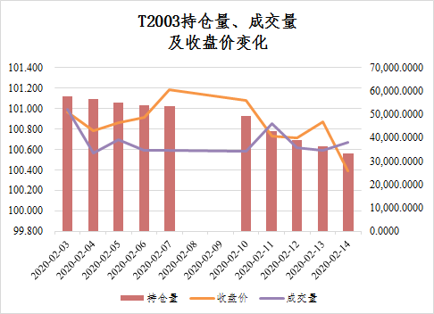 國債期貨現在處于移倉過程中,但是當前主力仍是T2003,小編主要分析還是以T2003為主。2月3日,開盤第一交易日,國債期貨便馬上兌現了疫情所帶來影響,在央媽OMO降息10BP利好刺激下,開盤價便為100.90元,較前一交易日99.69的收盤價跳漲了1.21元。大家本以為這就夠刺激的了~沒想到,盤中多頭爸爸們不停歇,最高價推升到了101.505元,再差一丟丟就觸及2%的漲停板了……但受當天資金盤緊張以及部分多頭獲利了解,T沒有一直強勢,最后收于100.97元,較于前一交易日收漲1.36%。