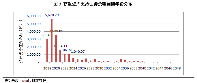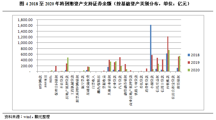 據(jù)wind統(tǒng)計(jì),截至2018年8月1日,國內(nèi)已發(fā)行3.98萬億元資產(chǎn)支持證券,仍在存續(xù)期內(nèi)的存量資產(chǎn)支持證券規(guī)模為2.01萬億元。國內(nèi)存量資產(chǎn)支持證券以債權(quán)類資產(chǎn)支持證券為主(見圖1),占比前五大的基礎(chǔ)資產(chǎn)類別包括個(gè)人住房抵押貸款、小額貸款、企業(yè)債券、租賃債權(quán)及汽車貸款。存量資產(chǎn)支持證券最新債項(xiàng)級(jí)別分布如圖2所示,目前國內(nèi)存量資產(chǎn)支持證券級(jí)別仍以高級(jí)別為主。從資產(chǎn)支持證券到期年份分布上來看,目前國內(nèi)存量的資產(chǎn)支持證券(見圖3)到期年份主要分布在2018年、2019年及2020年,其中2019年將有大規(guī)模資產(chǎn)支持證券到期,且2018年至2020年間到期的存量資產(chǎn)支持證券的基礎(chǔ)資產(chǎn)類別主要為小額貸款、應(yīng)收賬款及租賃債權(quán)(見圖4)。