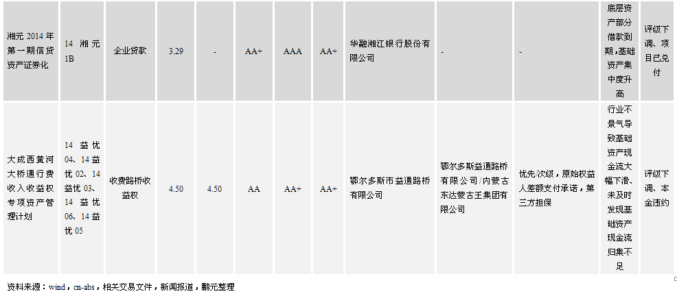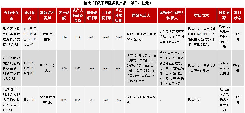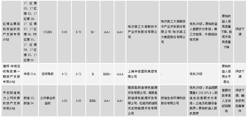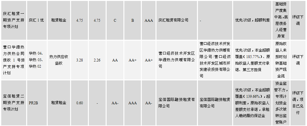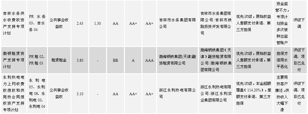 (1)評(píng)級(jí)下調(diào)證券化項(xiàng)目梳理