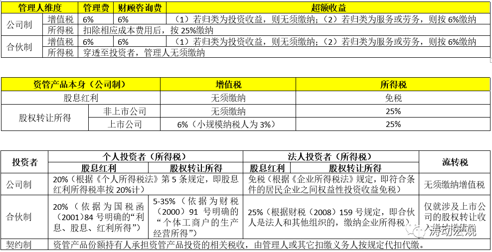 4、資管產品本身來看,考慮到合伙制企業層面不繳納所得稅、增值稅則與公司制企業相同,契約制合伙人層面不涉及稅收,因此這里僅以公司制企業為主。