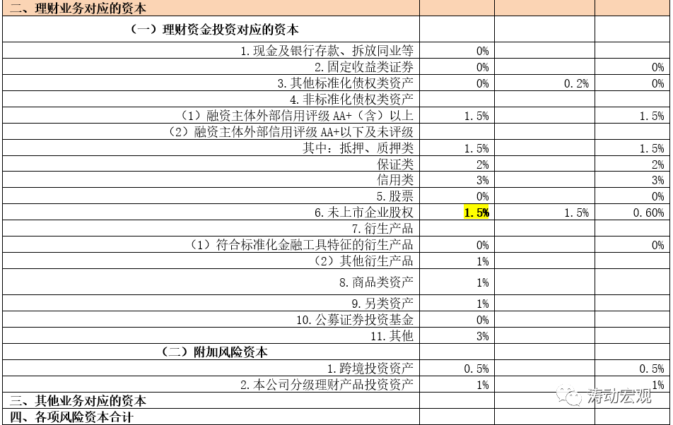 需要說明的是,這里對未上市企業股權的風險系數設定理財子公司主要參照了信托公司(二者均為1.50%)。