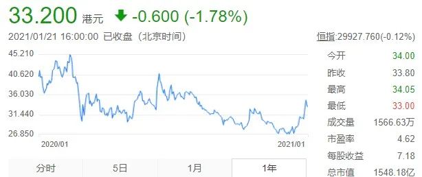 首先融了小100億元(不到)港幣,股價也從2020年11月10多塊港幣,漲到了24塊(截至2021年1月21日收盤)。
