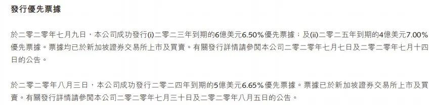 融創中國當然也在想辦法,如上圖,2020年中報披露,發行了好幾筆單筆數億美元的優先票據,利率6、7個點不等。利率高不高,杠桿地產不判斷,桿友覺得呢?