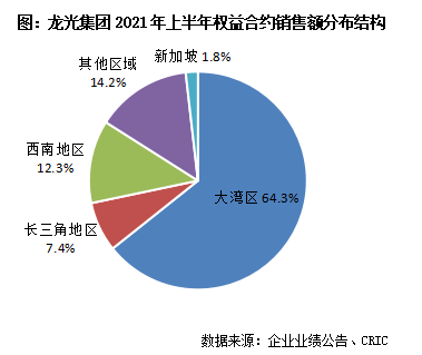 龍光能夠保持平穩增勢,一方面是深耕區域市場持續發力,大灣區作為業績的主要來源,上半年總計貢獻權益銷售額473.63億元,占比超過總業績的6成,是企業業績增長最大的助力器。此外,以南寧為核心布局的西南區域業績貢獻維持基本穩定,銷售額達90.45億元,占比12.3%。另一方面,外拓區域的銷售為業績增長添磚加瓦,長三角區域權益銷售額達54.23億元,同比增長214.6%,業績貢獻率提升至7.4%。總的來說,龍光深耕區域市場廣闊,外拓城市選擇得當,項目去化具備需求支撐,為規模增長創造了良好條件。