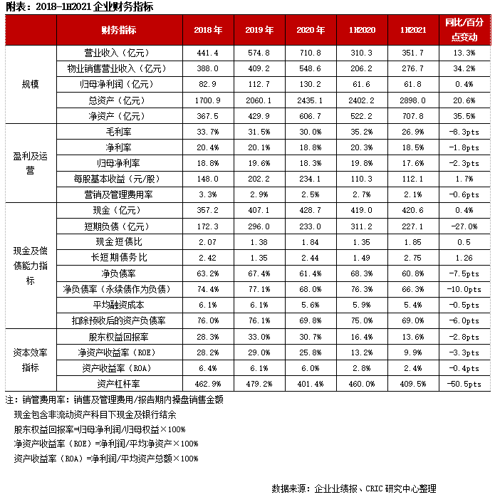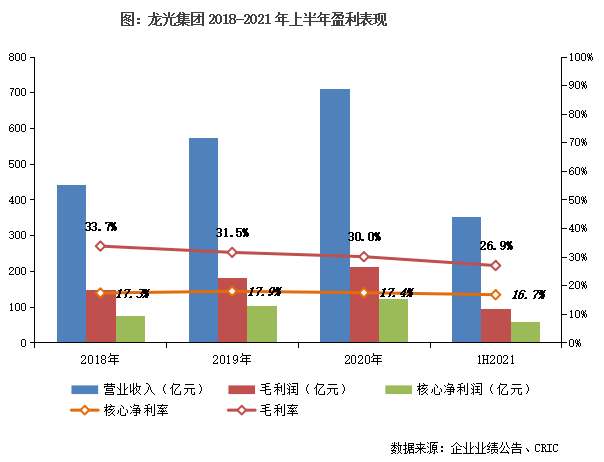 在行業利潤率普遍下滑背景下,上半年公司毛利率27%,較2020年微降3個百分點,明顯低于行業平均降幅。盈利能力保持穩定,競爭優勢持續穩固。未來,龍光保證、提升自身的盈利能力,需進一步加強土地成本控制、提高管理效能。