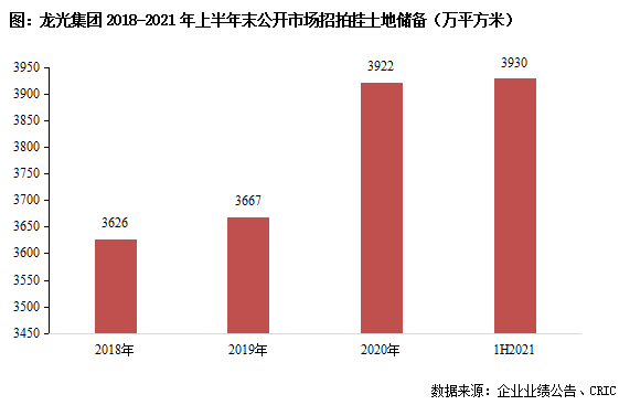 值得注意的是,龍光積極關注集中供地機會,上半年在深圳、成都、長沙等熱點城市集中供地中均有所獲。尤其在深圳首輪集中供地中,作為區域深耕房企,龍光總斥資近80億元拿下兩塊地,有效補充了在深圳的土儲。截至2021年上半年末,龍光公開市場招拍掛土儲達3930萬平方米,貨值約5320億元。