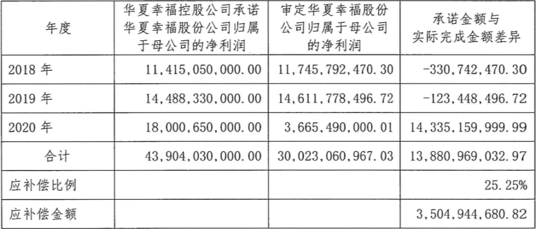 最新華夏控股2020年財報顯示,華夏控股對平安的利潤補償數額應為: