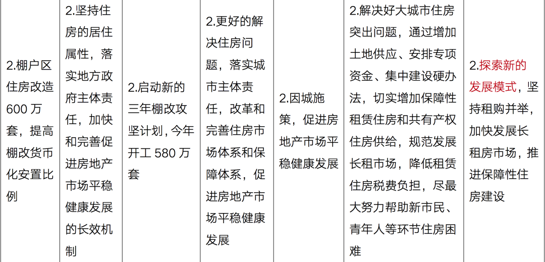 今年政府工作報告中有關(guān)房地產(chǎn)部分內(nèi)容只有109個字,對比歷年政府工作報告有關(guān)房地產(chǎn)方面的表述,我們發(fā)現(xiàn),2022年政府工作報告相較于2021年有所減少。但核心仍在于堅持房子是用來住的、不是用來炒的定位。