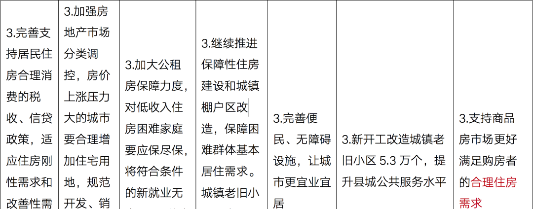 今年的政府工作報告關(guān)于房地產(chǎn)的內(nèi)容延續(xù)了去年末以來的政策口徑,相較于往年新增了“良性循環(huán)”和“支持商品房市場更好滿足購房者的合理住房需求”的表述,同時政府工作報告中并未提及房地產(chǎn)稅,重點城市試點工作或?qū)⑾蚝笱悠凇?/p>