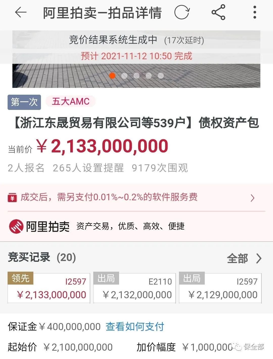 中國(guó)信達(dá)浙江省分公司在阿里拍賣(mài)平臺(tái)掛拍的本息金額合計(jì)204億元的不良資產(chǎn)包溢價(jià)成交,成交價(jià)21.33億元,成為網(wǎng)拍成交的最大金額資產(chǎn)包。