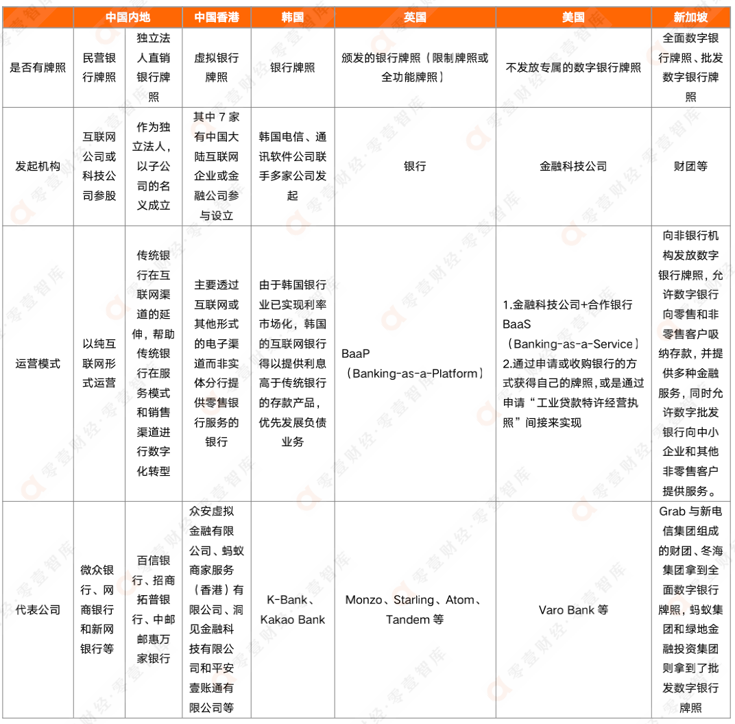 表:全球部分國家和地區數字銀行設立模式及發起機構對比