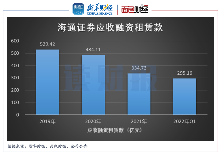 2022年一季度末,海通證券的應(yīng)收融資租賃款為295.16億元,較上年年末減少11.82%。2019年以來,公司的應(yīng)收融資租賃款金額規(guī)模持續(xù)下滑,但相應(yīng)產(chǎn)生的信用減值損失卻不見明顯跌勢(shì),在2020年一度高達(dá)12.66億元,而2021年亦產(chǎn)生了超10億元信用減值損失。
