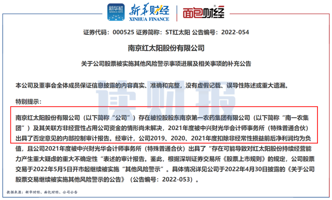 根據(jù)2021年年報(bào),當(dāng)期海通證券和海通資管均身陷與與南京第一農(nóng)藥集團(tuán)有限公司的質(zhì)押式證券回購糾紛案,涉案本金分別為3億元和3.2億元,涉及的質(zhì)押標(biāo)的為ST紅太陽(證券代碼:000525)。2021年6月,南一農(nóng)公司已被法院裁定破產(chǎn)重整。