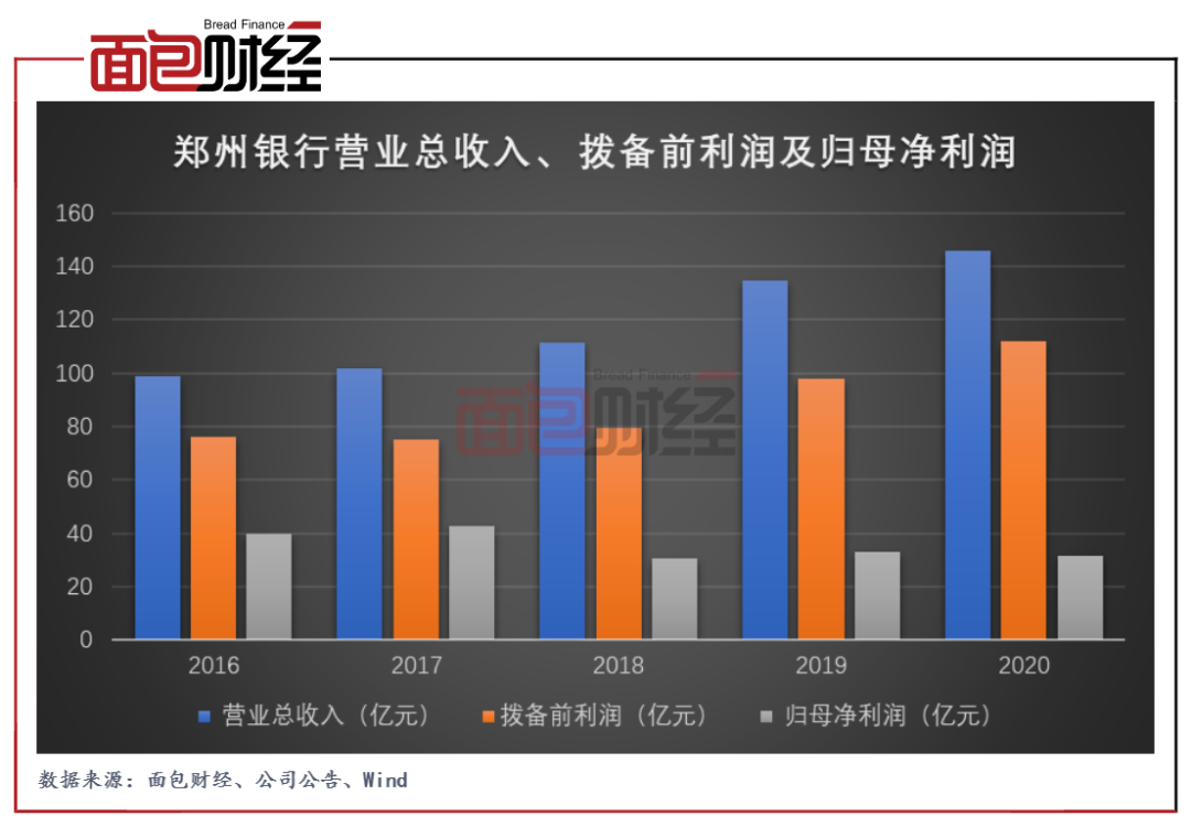 年報數據顯示,2020年鄭州銀行實現營收146.07億元,同比增長8.30%;實現歸母凈利潤31.68億元。