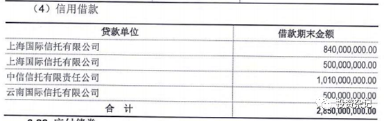 某平臺披露,其2018年底的長期借款余額是42.69億,其中信用借款28.5億。但這部分信用借款均是信托借款,根據審計報告披露來自于三家信托。當然,還需要進一步向發行人了解信托借款期限、成本,是銀行通道還是自身主動管理(因為是信用,猜測是銀行借信托通道,一般信托自己的項目是需要抵質押的。)