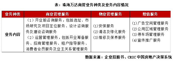 從招股書來看,本次申請上市的珠海萬達商管是一家服務于商業(yè)廣場的輕資產商業(yè)管理公司。負債端而言,截止至2021年上半年,珠海萬達商管總有息負債為14.0億元,而企業(yè)持有現(xiàn)金總額為65.5億元,遠超負債總額。從資產端來看,企業(yè)非流動資產規(guī)模較小,其中投資物業(yè)總價值僅為6.6億元,代表企業(yè)并不持有物業(yè)。從業(yè)務模式來看,本次上市的珠海萬達商管定位為全國最大的商業(yè)運營服務提供商和科技驅動的商業(yè)管理和數(shù)字化運營公司,專注于商業(yè)廣場業(yè)務。其主要業(yè)務內容包括:商業(yè)管理服務、物業(yè)管理服務以及增值服務。