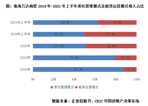 企業(yè)曾短暫嘗試將母公司項目轉為租賃運營模式,上半年為保持一致又全部轉為委托管理模式。根據(jù)企業(yè)招股書披露,2018年至2020年企業(yè)的租賃運營模式收入快速增長,一方面是第三方在管項目數(shù)量增長明顯,由2018年的23個增長至2020年的79個,另一方面企業(yè)在2020年還嘗試將母公司旗下的55個項目也轉為租賃運營模式,因此2020年租賃運營模式收入占比接近一半。不過目前企業(yè)280個母公司集團商業(yè)廣場全部轉為委托管理模式,僅118個在管獨立第三方商業(yè)廣場中82個采用租賃運營模式管理,因此短期內可以預期租賃運營模式收入將有下降。