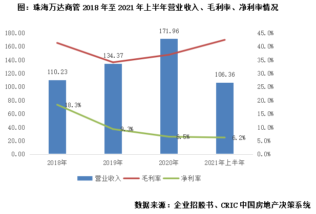 營收穩(wěn)步增長,毛利率企穩(wěn)回升,上半年凈利率受出售附屬公司影響。近年來,珠海萬達商管保持著同比超20%的營收增長率,2021年上半年實現(xiàn)營收106.4億元,同比增長42.7%,主要是由于去年同期疫情突發(fā),企業(yè)業(yè)務受到一定影響,收入基數(shù)偏小。盈利方面,企業(yè)毛利率持續(xù)回升,上半年整體毛利率達42.4%,創(chuàng)下近三年新高。但上半年凈利率較低,主要是由于2021年3月及4月企業(yè)為調整運營模式,出售附屬公司虧損了13.2億元,因此可以預期后期企業(yè)凈利率仍有回升空間。