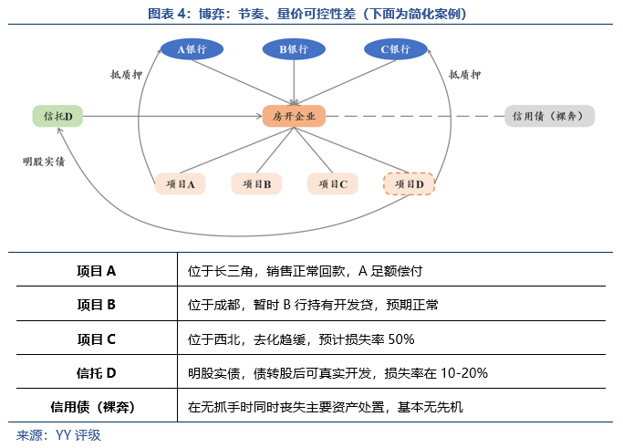 從這個視角看,房地產開發企業-項目公司-不同類型的投資者,抓手完全不一樣,所以非常有可能出現的問題是:有的投資者100%償付,而有些則可能非常大的損失率。