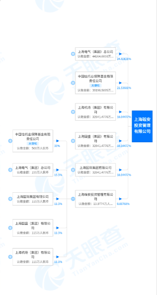 大股東為上海電氣集團,持股比例為24.32121%;二股東是信保基金,持股比例為21.53681%,機場、國盛和國際集團分別持股18.04477%,最后一點股份是一家上海維安投資管理有限公司。