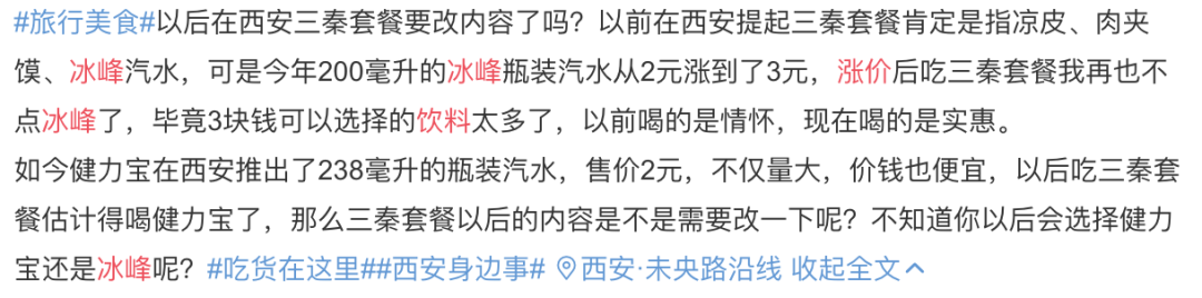 冰峰飲料系一家陜西本地的區域性老字號,是深入人心的三秦套餐(肉夾饃+涼皮+冰峰)中的重要一員,這點從招股書中可見一斑。