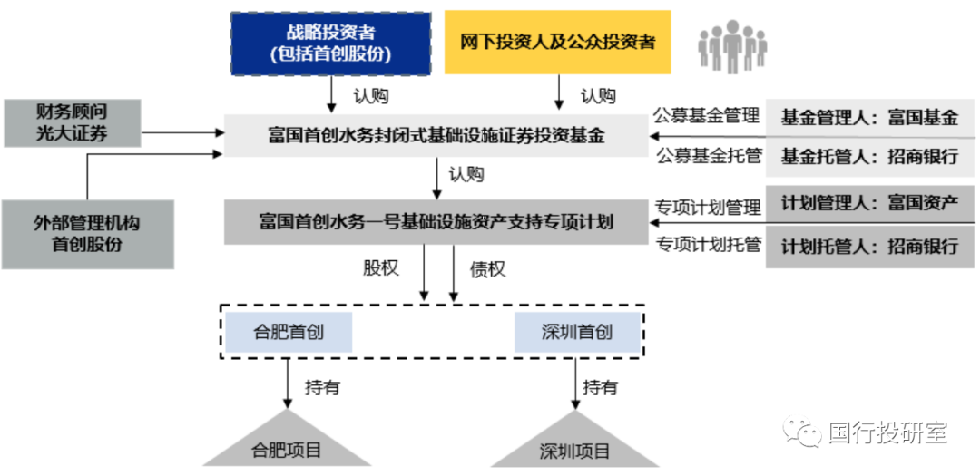 (3)具有公募基金管理資格的證券公司(含資管子公司)與基金管理公司以此為基礎設立公募基礎設施REITS基金,向戰略投資者(含原始權益人)、網下機構者與公眾者投資者募集資金,并通過上述資產支持計劃投向基礎設施項目,持有基礎設施項目所有權與經營權。