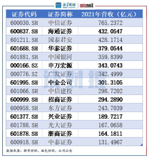 在已披露2021年年報(bào)的上市券商中,華林證券當(dāng)年的營收同比下滑,其余券商的營收均有所增長。其中,中信證券、海通證券、國泰君安等8家大型券商的營收超過300億元。
