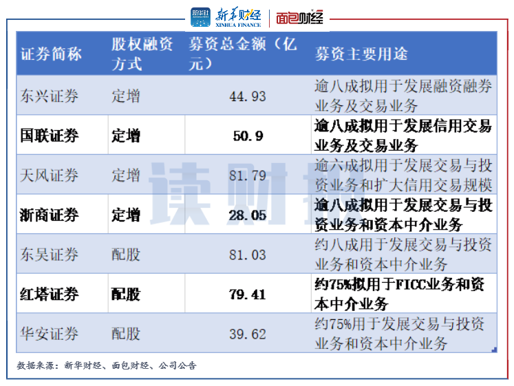 在當(dāng)前以凈資本為核心的風(fēng)險(xiǎn)監(jiān)控與預(yù)警制度下,券商的凈資本規(guī)模成為反映其風(fēng)控能力的重要指標(biāo)之一。此外,傳統(tǒng)經(jīng)濟(jì)業(yè)務(wù)同質(zhì)化嚴(yán)重且傭金率下滑,也促使各大券商向資本中介、投資業(yè)務(wù)等資本消耗型業(yè)務(wù)轉(zhuǎn)型發(fā)展。2021年,多家上市券商通過定增和配股的股權(quán)融資方式“補(bǔ)血”。