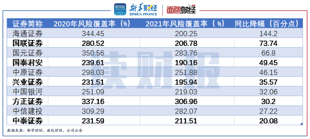 圖9:2021年風(fēng)險(xiǎn)覆蓋率同比降幅較大的前十家上市券商