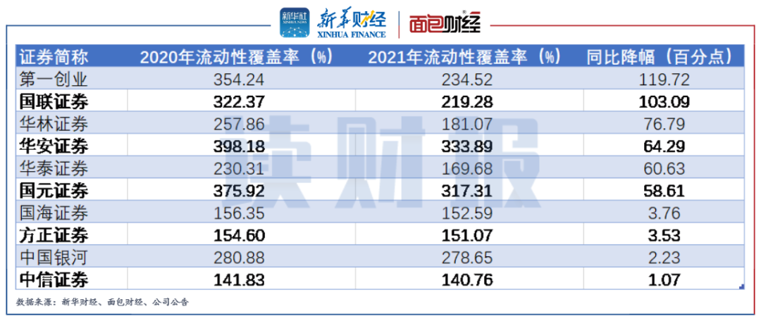 圖8:2021年流動(dòng)性覆蓋率同比降幅較大的前十家上市券商