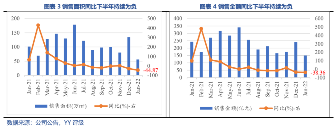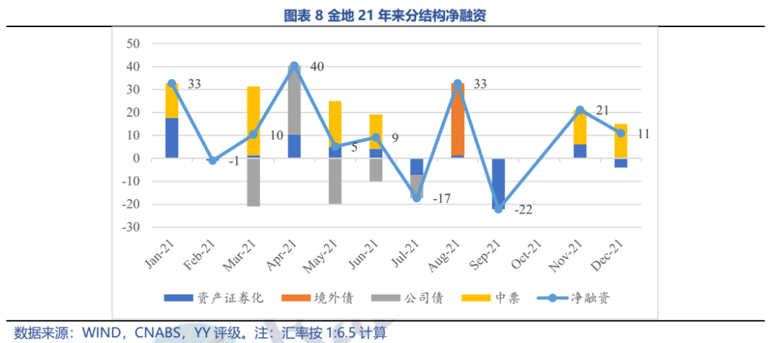 從邊際看,21年下半年銷售、拿地均斷崖式下降,下滑幅度位列非民企前列,全年高溢價(jià)、低權(quán)益比拿地依舊常見,經(jīng)營(yíng)邊際有所弱化,但另一方面融資未見受阻。政策收緊與需求收縮對(duì)金地的經(jīng)營(yíng)和財(cái)務(wù)影響并不對(duì)稱。