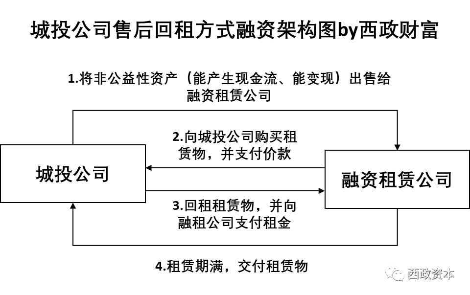 1. 城投公司將非公益性資產(能產生現金流、能變現)出售給融資租賃公司;