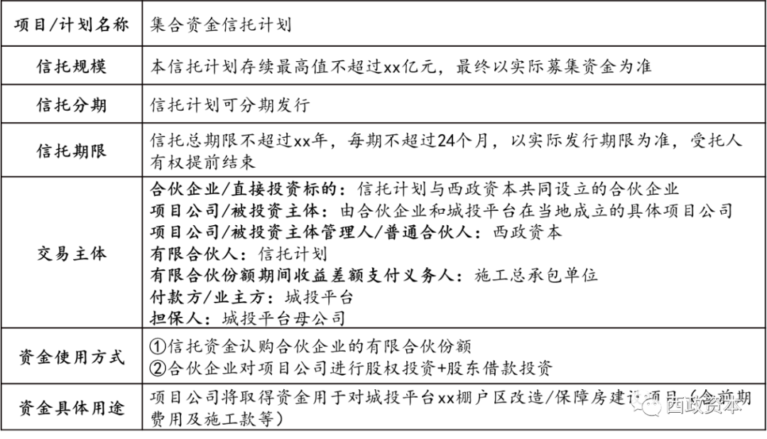 (1)西政資本作為GP與信托計劃(LP)共同成立有限合伙;信托產品份額通過信托自行募集或銀行、西政財富代銷。