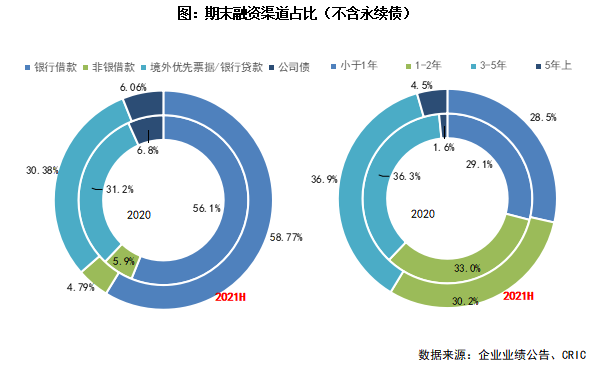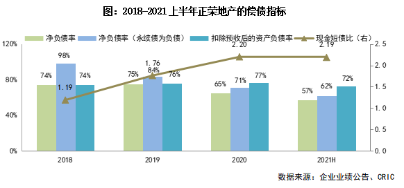 期內,正榮新發行的優先票據成本較期初下降60bps至6.7%,境外人民幣點心債成本從期初的7.4%下滑至7.125%,境內公司債票息下行至6.3%,并通過借新償舊的方式成功贖回13億美元的境外債(票息5.6%-9.8%)。債務置換實現綜合融資成本的改善,2021上半年融資加權利率6.35%,較年初減少0.15pct,資金成本優勢凸顯。